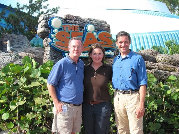 Once all the turtles were examined and secure in their rehabilitation tanks the group was given a tour of their animal care facilities. Around 5:00 that afternoon Fabien, Julie and Charles left Sea World and headed over to the Living Seas at Disney’s EPCOT. The two turtles at Disney were first checked out at the by Animal Kingdom veterinary care facility. Then they were transported to a backstage animal rehabilitation area behind the Living Seas at EPCOT. In addition to confirming the turtles were in good care Charles, Julie and Fabien were given a backstage tour the Living Seas.
