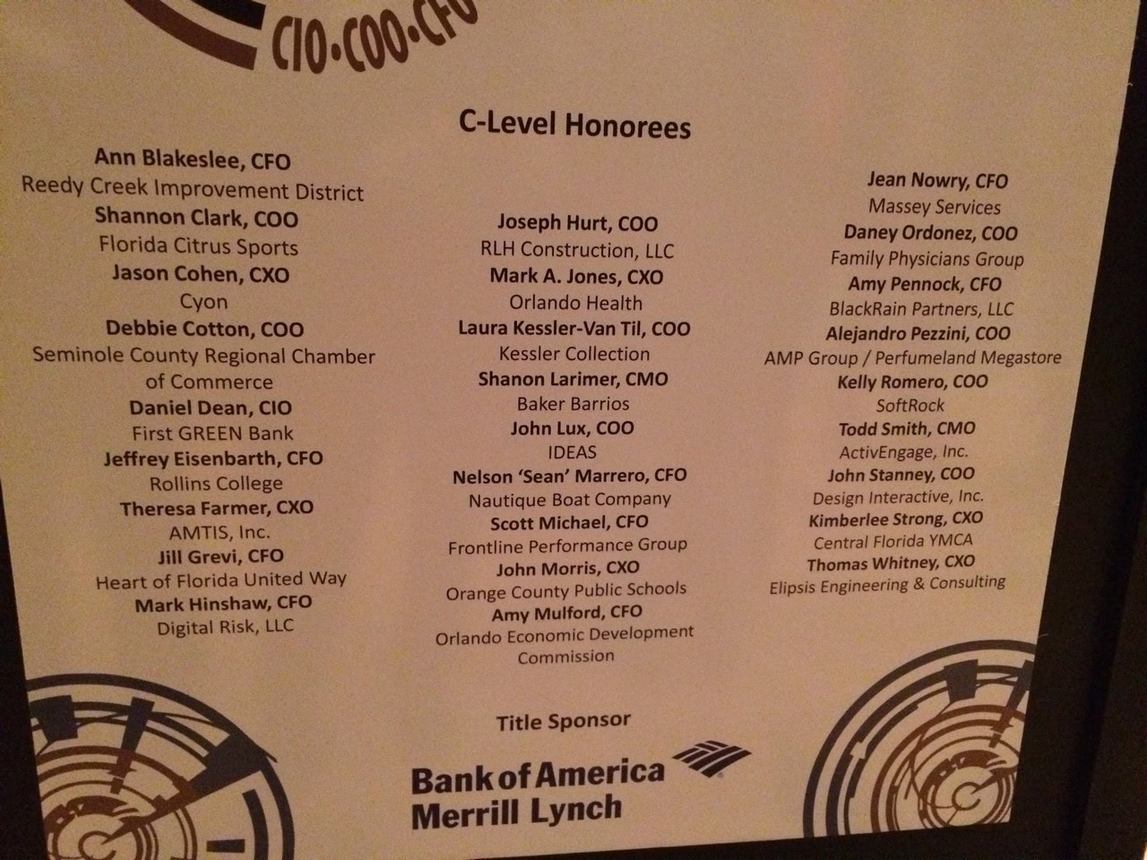 IDEAS Chief Operating Officer John Lux has been named one of twenty-eight honorees of the Orlando Business Journal’s annual C-Level awards celebrating Central Florida’s top CIOs, COOs, CFOs, CMOs and CXOs. All twenty-eight honorees were recognized at an awards luncheon on July 18 at the Hilton Orlando. “Anytime you’re recognized for the work you do it’s nice,” commented John Lux, Chief Operating Officer of IDEAS. “I do the best I can to help our company be successful and grow and for people to see the time, effort, and energy that I put in to my job and for them to feel I do a good job, of course I’m honored. In the end, this is about IDEAS so anything I can do to help get our message out there is a good thing.” About IDEAS: Located in downtown Orlando, IDEAS is a media and experience design company using the central premise that powerful stories create powerful experiences. IDEAS creates products for healthcare, government, enterprise, and entertainment clients worldwide as well as creating its own intellectual property. The team at IDEAS has more than 400 years aggregate experience in concept development, experience design, branding, training, and media production, and mobile development. For more about IDEAS visit IDEASorlando.com. Photos and video profile of John below.