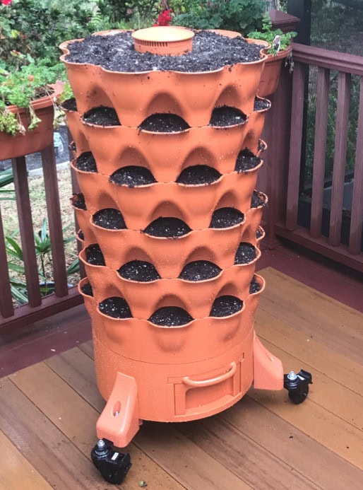 Okay, if you are just tuning in, you might wish to read my previous blog post first. Here’s where we left off. I have the Garden Tower 2, assembled, with soil and proper vermiculture composting completed. Just need something to grow now!
