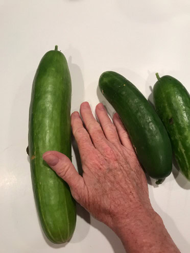 Learning #5: Cucumber plants have thorns. Well, maybe better said, little bitty, needles on all their vines and on their leaves, and even on the cucumbers themselves. (You can see them on the vines if you look very closely at the pictures of the emaciated leaves above.) I found this out the hard way. You see, when I moved those cucumber vines, I got stuck plenty of times. It hurts, but not massively, like a stinging nettle hurts, but it does sting a little. And, just like the stinging nettle, it causes numbness wherever it touches. So, for a few days I couldn’t feel the tips of some of my fingers. That’s resolving now (day five), but after some research I found that in fact, even the cucumbers we buy in the store that seem smooth had needles on them before cleaning. When I thought about it, the ones I harvested did, too, but I was using gloves, and simply handling them made them all fall off leaving a smooth thin, skin. I read that some cukes actually have actual thorns, which makes sense now that I think about it. That’s why pickles have those bumps on them; it’s where the thorns were! Anyway, if you grow cucumbers, use gloves when doing the harvesting or otherwise handling the plants.