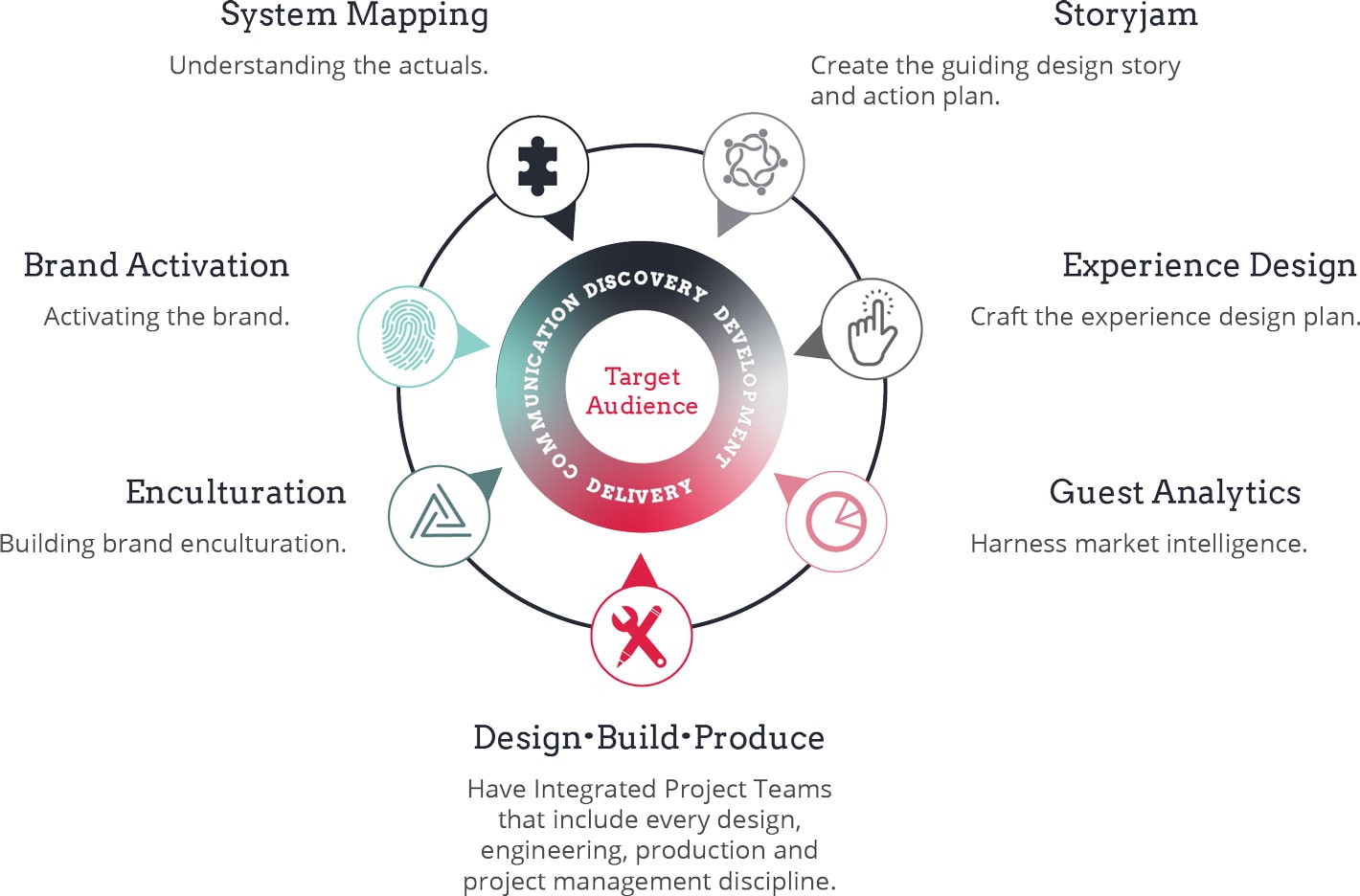 - Create the guiding design story and action plan for delivering the optimal future for the project and its brand.