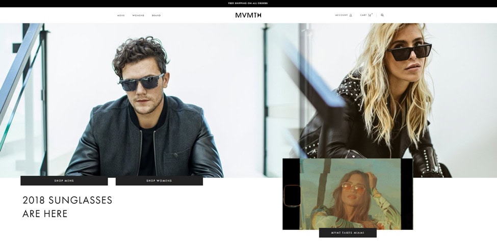 The same is true for branding. As an ecommerce evangelist of sorts, I’ve seen brands do great work customizing store templates. Take MVMT, for example— their homepage is crisp and clean and a contemporary masterpiece of pared-back visual storytelling: