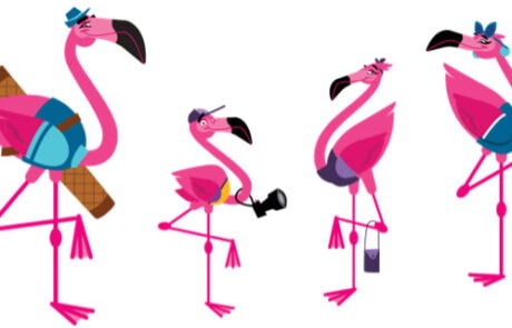 From their own lofty perch, guests aboard The Wheel help these long-legged pink tourists make lasting memories. They capture pictures of stops along the way for their scrapbooks using a Photomatic Camera from their cabin’s view.
